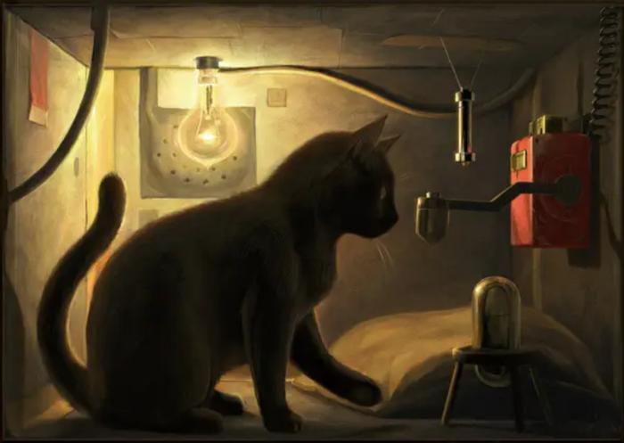 薛定谔提出如果将一只猫关在一个密闭的容器中,容器内装有少量镭和氰化物,镭可能会发生衰变也可能不会衰变,衰变猫就会死,不衰变猫就能存活。
