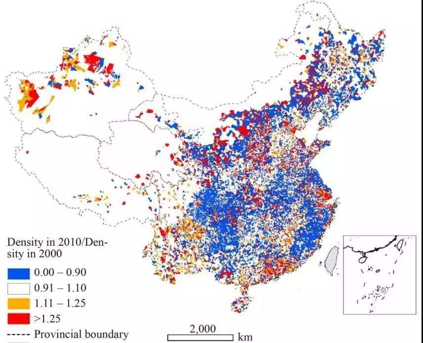 时间倒回到2013年的一个晚上,在英国做访问学者的龙瀛“发现了中国的一个秘密”。当他跟合作伙伴很机械地用电脑进行了5万次Ctrl+C、Ctrl+V,把我国第五次、第六次人口普查数据标注在地图上后,龙瀛意识到——中国有一万多个乡镇和街道办事处的人口在2000-2010年间处于高频率流动状态。