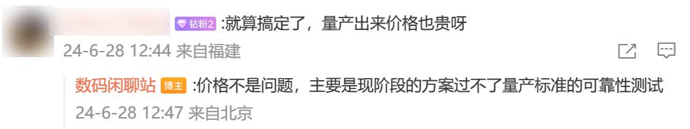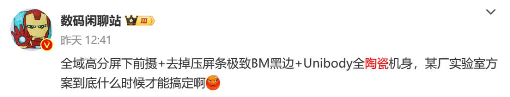 小雷注意到,爆料博主也在评论区回复网友时透露,现阶段 " 全域高分屏下前摄 + 去掉压屏条极致 BM 黑边 +Unibody 全陶瓷机身 " 这个实验室方案,还过不了量产标准的可靠性测试。换句话说,这样生产出来的手机比起其他旗舰手机可能不够抗摔,如何照顾好全面屏设计的颜值和手机基础的可靠性之间的平衡?这是手机厂商接下来要认真考虑好的事情了。