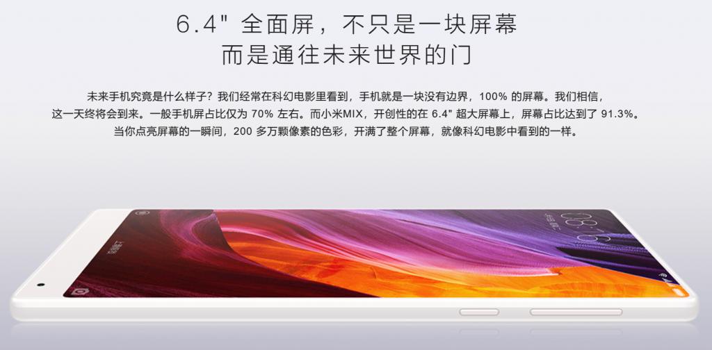 时间回到 2016 年 10 月 25 日,小米 MIX 1 正式发布。在彼时手机正面依然是额头 + 下巴设计、屏占比多为 70% 的年代,小米 MIX 1 采用 6.4 英寸真全面设计,屏占比高达 91.3%,属实是一股难得的清流。从此以后," 全面屏 " 不再是一个遥不可及的概念,它有了小米 MIX 1 这样的范本,MIX 1 也成为引领者,掀起了手机行业一股全面屏风潮。