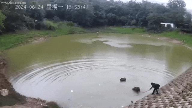 捞上来又滑下去!男子雨天钓鱼落水3次,辅警连捞3回