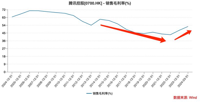 在过去两年腾讯也采取了诸多手段来遏制毛利率的持续下行," 节流法 " 功不可没,但这显然不是 2024 年毛利率上行的主要因素。