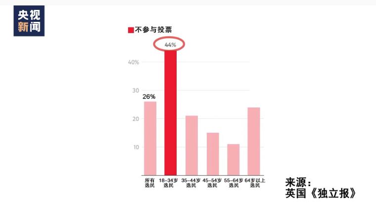 据央视新闻 7 月 4 日消息,英国《独立报》7 月 3 日称,有 26% 的选民表示,他们不会参与 7 月 4 日的投票,这一数字比上周的民调数字增加了两个百分点,创下纪录。报道指出,更令人担忧的是,年轻人对于投票表现出的 " 淡漠 "。18 岁至 34 岁的选民中,有 44% 表示不会参与投票。