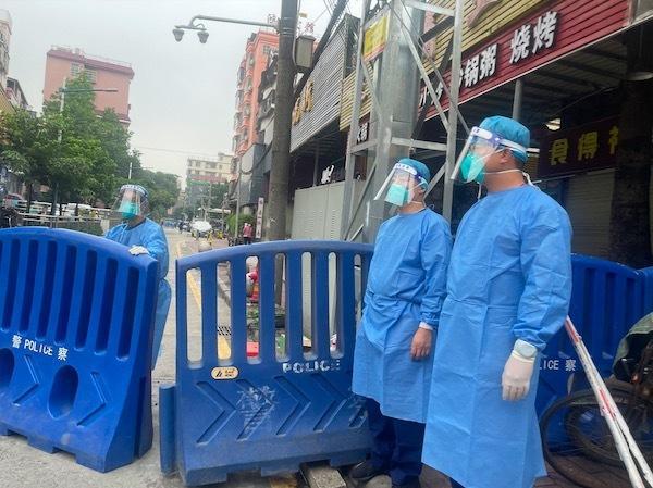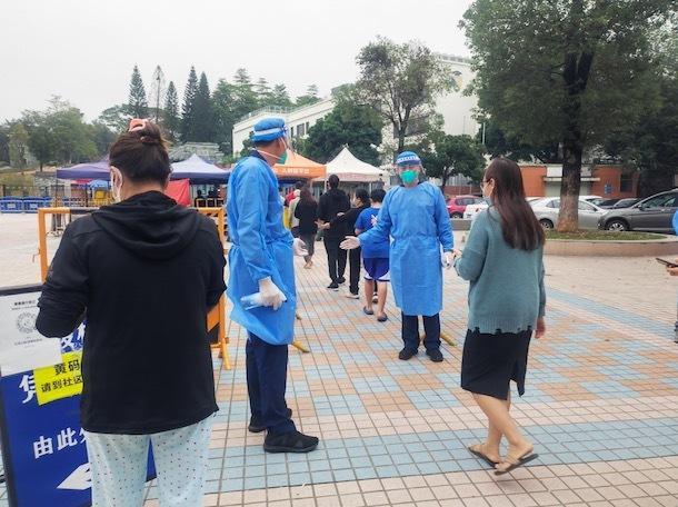广东消防抗疫突击队在核酸检测点维持秩序。广东省消防救援总队供图