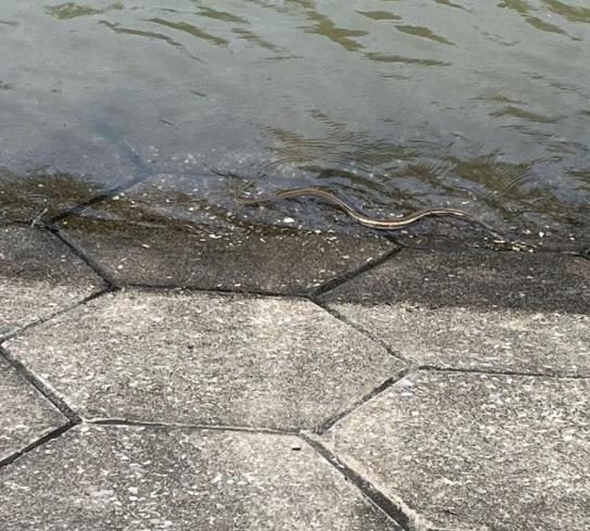 同样 7 月 2 日,有网友发视频称,在汉口江滩游玩时发现水中有蛇。视频显示,一条小蛇在水边游着,试图上岸。