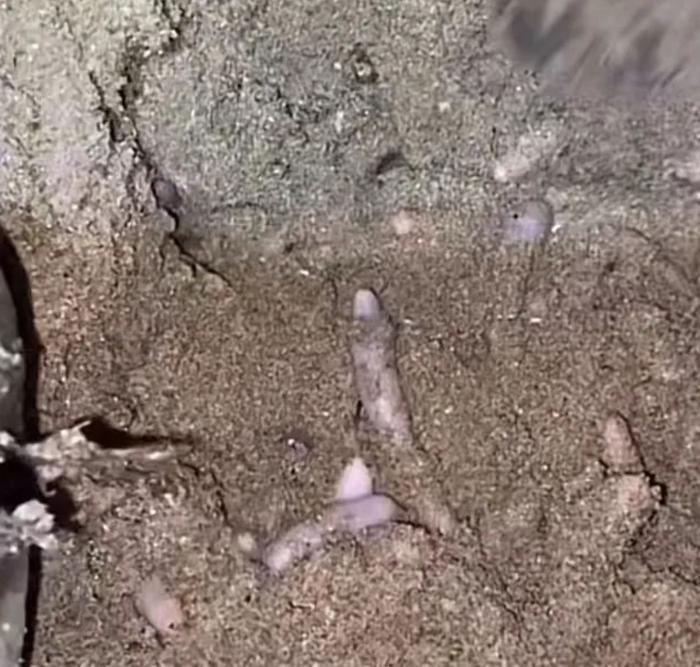 二是前几日大风天气,借助潮汐作用,这些迁徙中的泸沽虾、海肠等生物,随大浪直接留在了沙滩上。