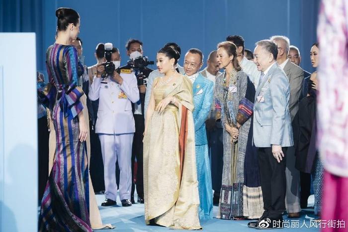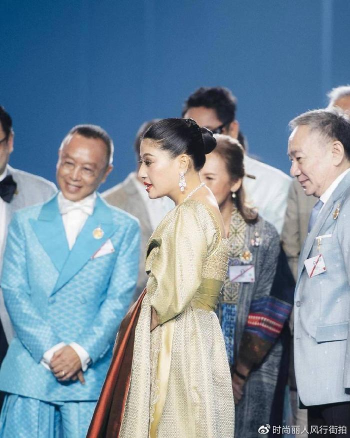 苏提达王后穿着传统泰服在王后堆里还是非常吸睛,其他王后一般都是普通的礼服裙,而苏提达在英国换了两套传统泰国服饰,将泰国风情演绎到了极致。