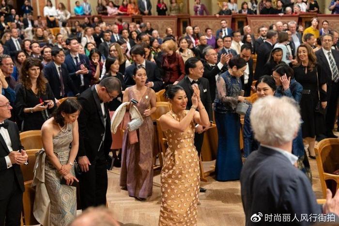 36岁的Siri公主这次在维也纳,没有选择传统的泰国服饰,多套现代装造型非常惊艳。而这条小金裙可真是闪耀,Siri公主在国际上还是有一定影响力的,她是泰国著名的设计师,苏提达王后这次参加查尔斯国王的加冕典礼,也是穿着Siri公主设计的高跟鞋亮相。而出席过各种时装周很多次的Siri公主,在这次的音乐会上,非常端庄大气。