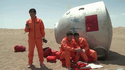 航天员穿着着陆用鞋进行沙漠野外生存训练