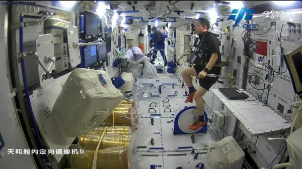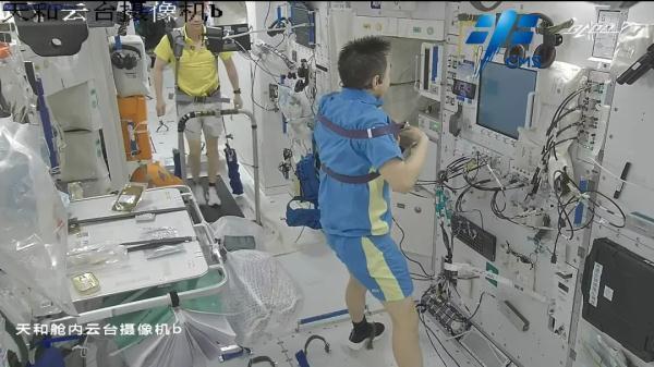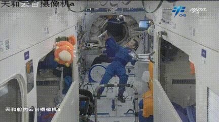航天员穿着企鹅服及企鹅服鞋开展工作