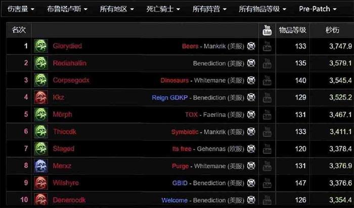 在团本当中表现最好的目前就是DK,基本上可以说是现在团本DPS的天花板了,这还是装备没有那么好的情况下,可以看得出来当年DK作为一个新出的英雄职业,是非常强势的,当然在正式版本开放以后,并不是最强的,但也一直在T1的阵列当中。