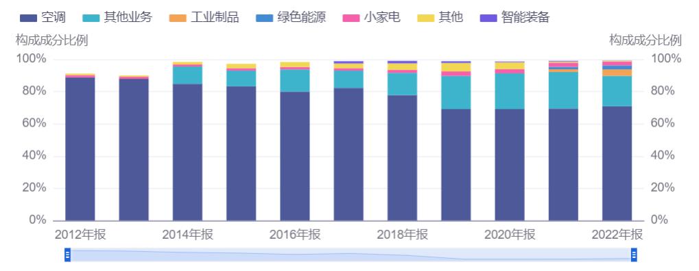 图:格力 2012~2022 年营收占比图,图源同花顺 iFind