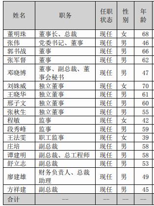 目前,在格力电器的高管团队中,主要有现任董事张伟、郭书战、张军督,董秘邓晓博,副总裁庄培、谭建明、舒立志、方祥建以及财务负责人廖建雄。