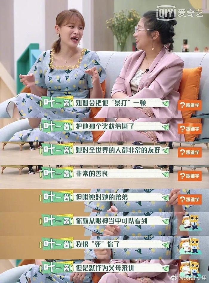 有网友翻出叶一茜的一段节目视频,她说女儿Cindy对全世界都很友好,但惟独很恨弟弟,她觉得弟弟很有心机。有次在家里,叶一茜和田亮正在训Cindy,弟弟拿着自己的奖状过来,给爸爸妈妈看,对姐姐神补刀。姐姐恨死弟弟了,把奖状撕掉。