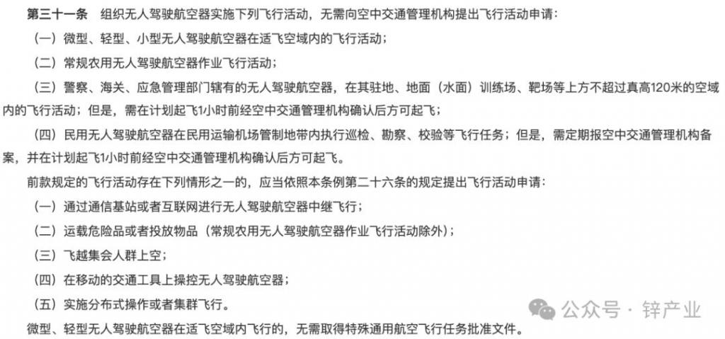 不过,今年行业热议的是另一个利好政策——自 2024 年 1 月 1 日起生效的《无人驾驶航空器飞行管理暂行条例》,这一条例明确规定了微、轻、小型无人机适飞空域,在真高 120 米以下的适飞空域无需申报、可以自由飞行。