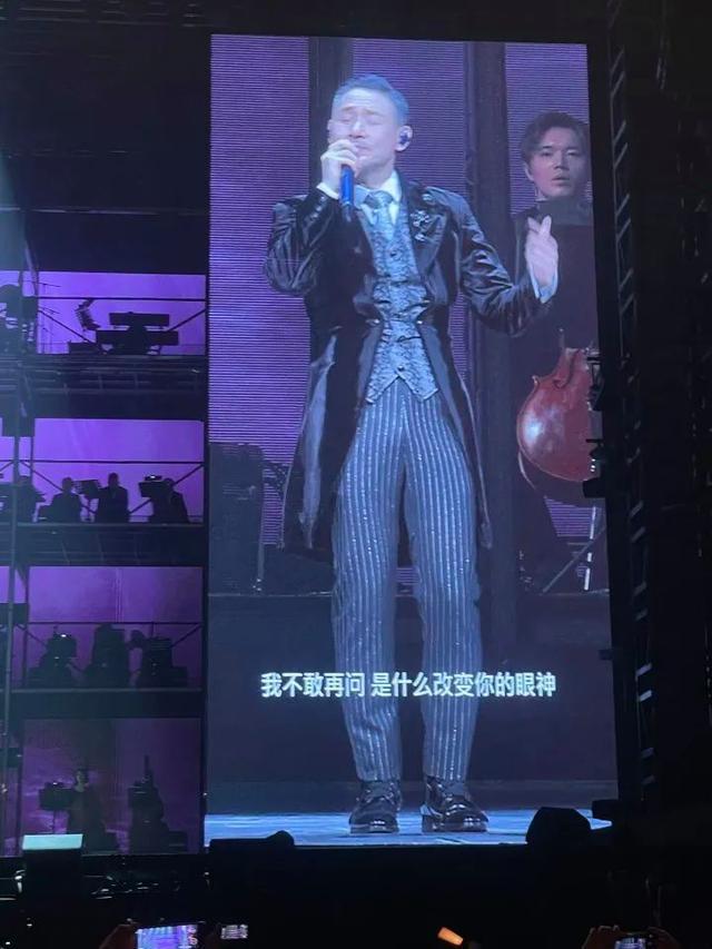 随后,张学友演唱了因为《繁花》而再度走红的《偷心》、以及大热门合唱歌曲《一路上有你》等。而在演唱《相思风雨中》之中,他更是不忘 cue 了杭州歌迷:听说杭州歌迷广东话很棒,下面这首希望一起唱。"