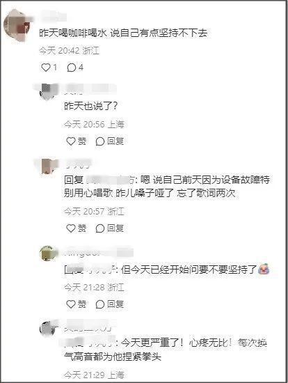 底下的粉丝也直言,其实昨晚的场次,张学友的声音已经有沙哑的状况出现了。