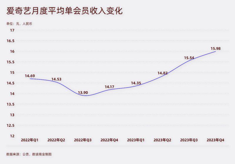 2022-2023 年 8 个季度,爱奇艺的 ARM 一路从 14 元左右涨到近 16 元,特别是最近两个季度,都超过了 15 元。但今年一季度,爱奇艺罕见的没有披露日均总订阅会员数据,也没有公布 ARM 数据,按照报喜不报忧的传统,这部分数据想必不会很好看。