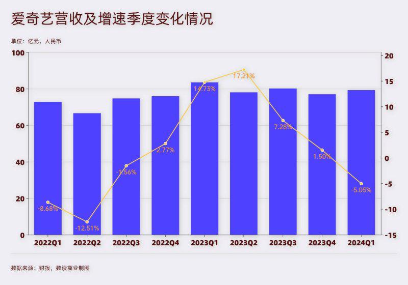 去年下半年,短剧风靡海外,但真正的排头兵是中文在线旗下的短剧 APP "ReelShort",后知后觉的优爱腾纷纷跟随,但最终也没有给业绩带来短暂的提振,流媒体平台又失去了一个增长机遇。今年一季度,爱奇艺该季度实现总营收约 79.27 亿元,同比下降 5%,2022 年四季度以后再度出现下滑。
