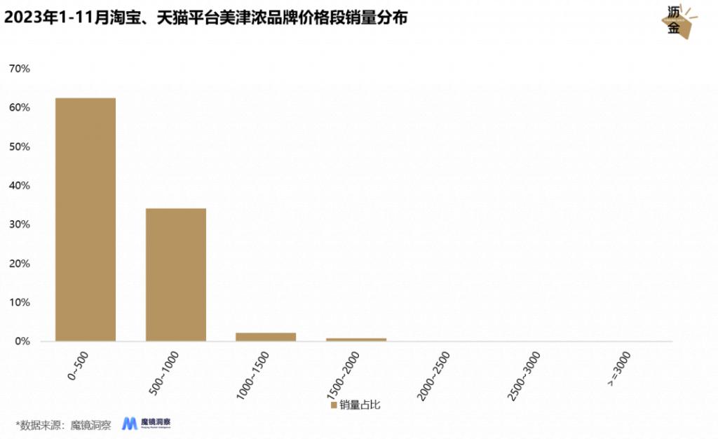 23 年 1-11 月淘宝、天猫平台美津浓品牌价格段销量分布