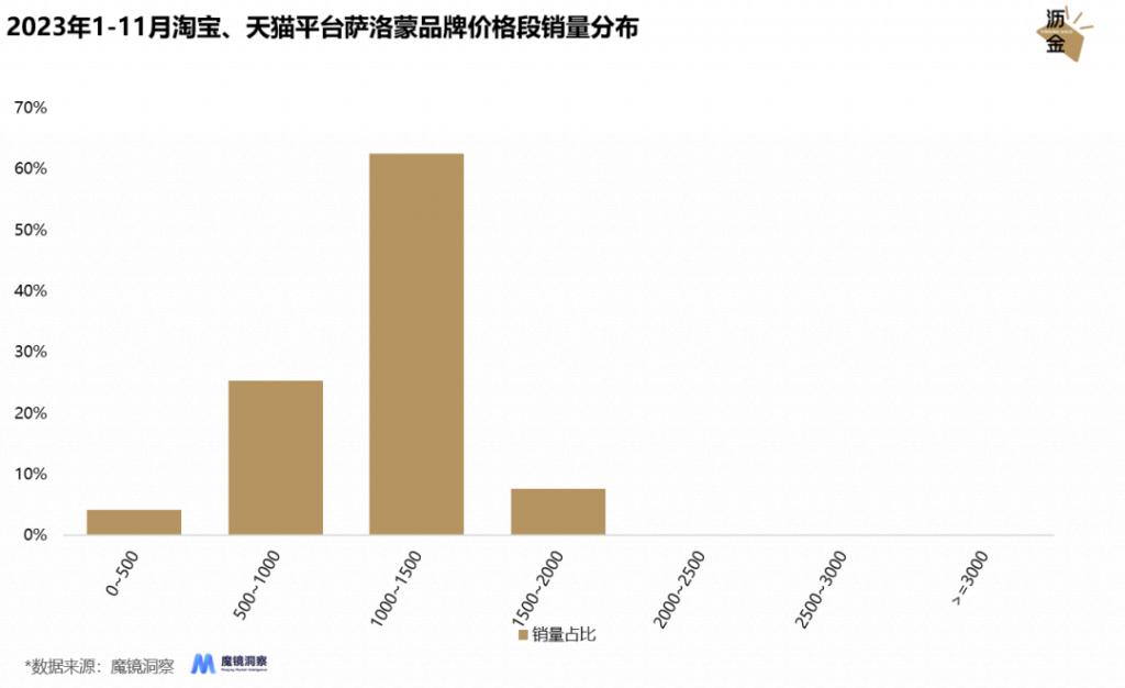 23 年 1-11 月淘宝、天猫平台萨洛蒙品牌价格段销量分布