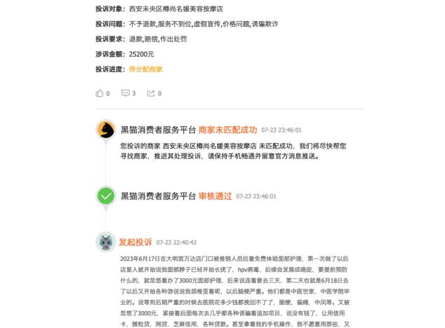 一位西安的消费者称,去年 6 月在一家按摩店充值了 3000 元,之后每次去按摩,都会被诱骗多加项目,即便自己说没钱,师傅还要让用户通过信用贷贷款来充值,只要进了这家店,不花钱走不出来,自己前前后后花了 2.5 万元。