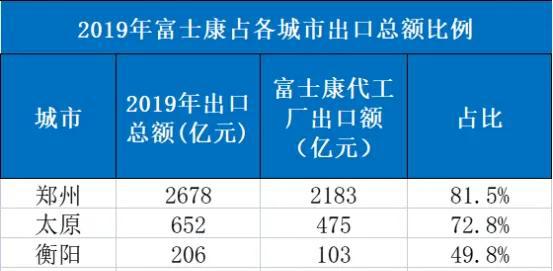 2019 年,富士康出口额占郑州市出口总额的比例高达 81.5%。