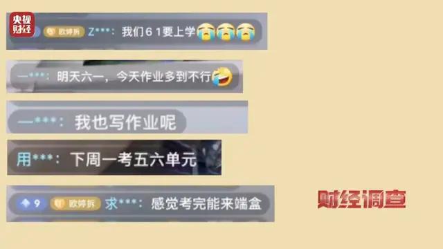 孩子们在这样 " 赌性 " 十足的直播间里一边写作业,一边聊着天,一边下单购买卡牌盲盒,主播还时不时加入他们嬉笑回应着,直播间 " 未成年人禁止购买 " 的标语形同虚设。