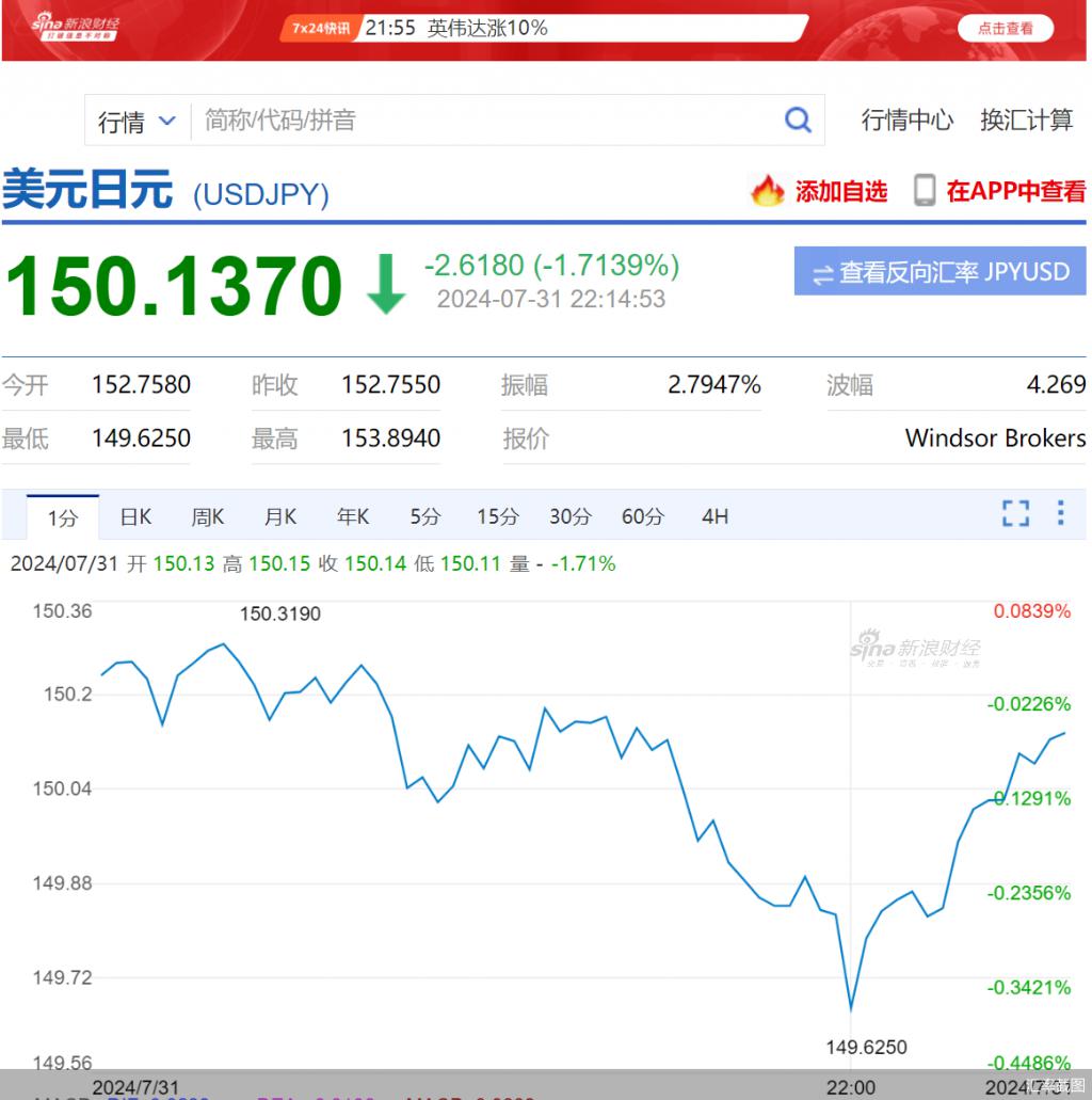 比起今年此前日本当局对日元欲说还休的态度,近期日本官员越来越明确表示不希望日元过于疲软。日本央行表示,日元汇率比以往更有可能影响物价。此次利率决议前后,日元对美元震荡幅度达到约 200 个基点。决议公布后,日元对美元短线走低,跌破 153 关口,一度跌至 153.88,截至发稿,日元对美元报 150.2,较上日跌 1.7%。