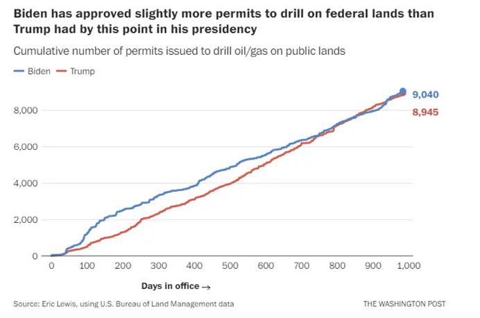 就职前 1000 天,拜登给出的钻探公共许可甚至高于特朗普。
