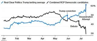 大选年总是很刺激:史诗级的刺杀 + 拜登退选之后,川普本次的赢面大涨。