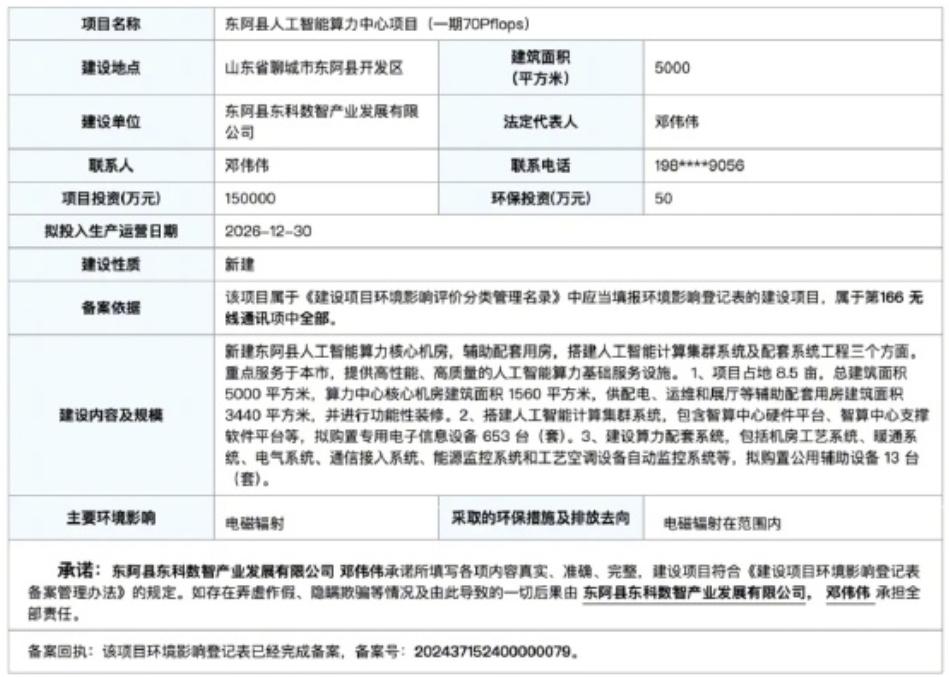 近日,山东东阿县人工智能算力中心项目(一期 70Pflops)备案的消息引发舆论关注。有网友发文表示,投资 15 亿在一个县城建算力中心有没有必要,并对资金来源提出了质疑。
