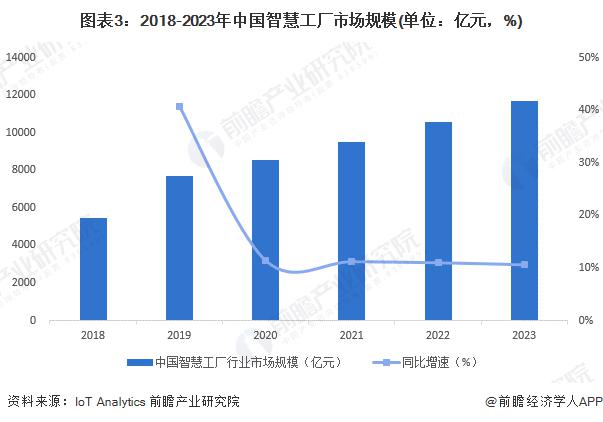 针对制造型企业智能工厂特性,结合生产工艺、企业生产组织架构搭建了智能工厂智慧能源管理系统,并将生产能耗数据与制造执行系统及排产系统数据相结合提出了能源利用优化方案,实现了企业精益制造管理,提升了资源能源利用率,为智能工厂建设提供了数据支撑。IoT Analytics 公布的数据显示,2018-2023 年中国智慧工厂的市场规模正在逐年攀升。2023 年,中国智慧工厂市场规模突破 11000 亿元。