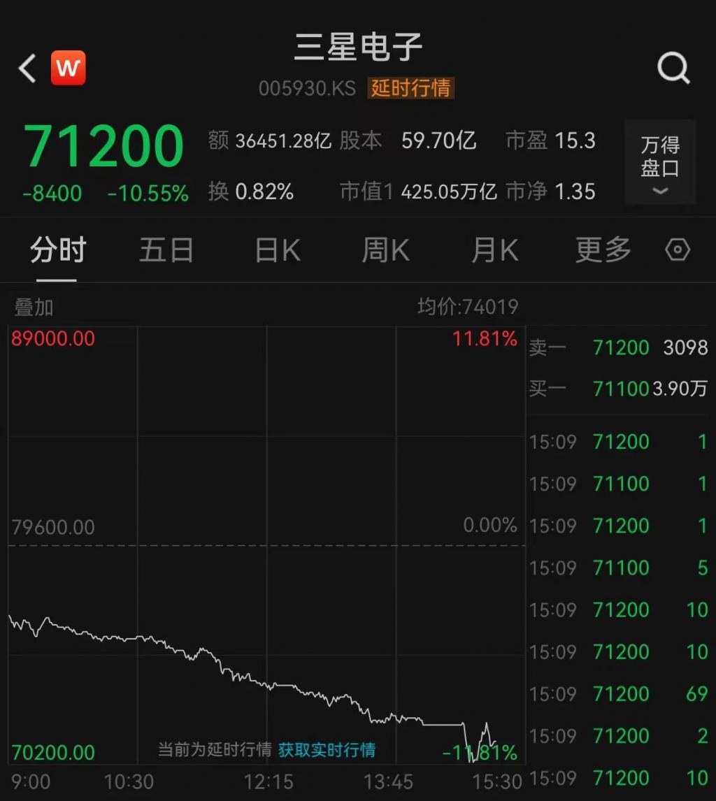 日经 225 均跌超 13%,韩国三星电子跌超 10%