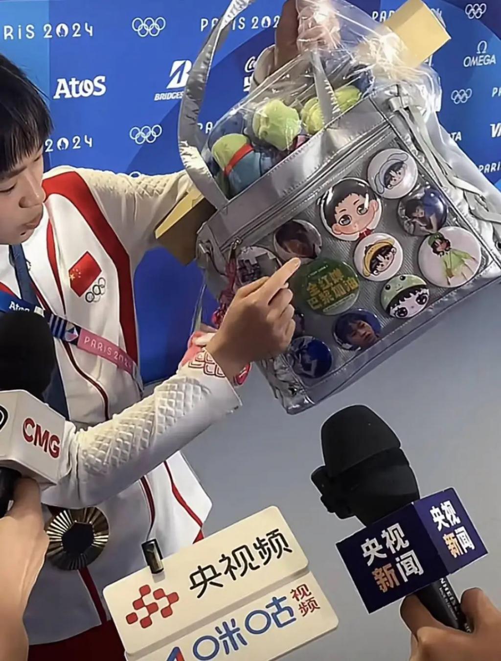全红婵在采访中展示的 " 丝带痛包 " 就是彻彻底底的 " 二次元 " 物件,透明夹层里放满了粉丝送的 " 吧唧 "(二次元周边徽章)," 还是我买不到银色缎面款,婵妹太幸福了吧!" 网友评论道。