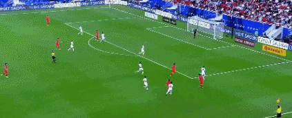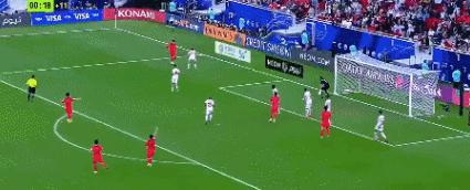 开场不久,韩国一次前场进攻轻松打穿约旦的防线。
