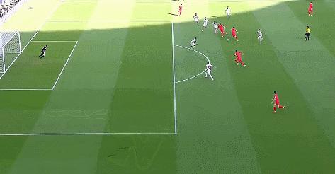 第 61 分钟,孙兴慜边路传中,皮球直接越过禁区,队友没接到。