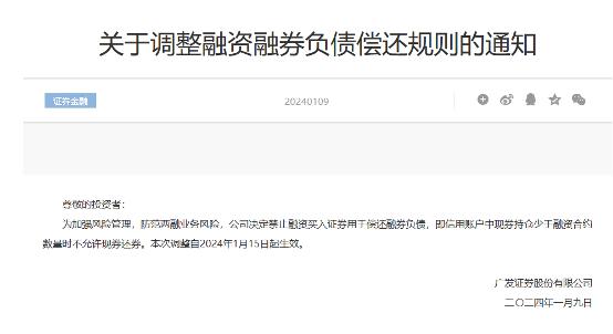 图为广发证券关于调整融资融券负债偿还规则的通知