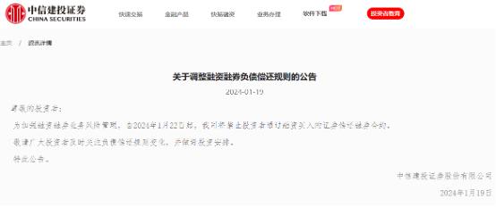 图为中信建投关于调整融资融券负债偿还规则的通知