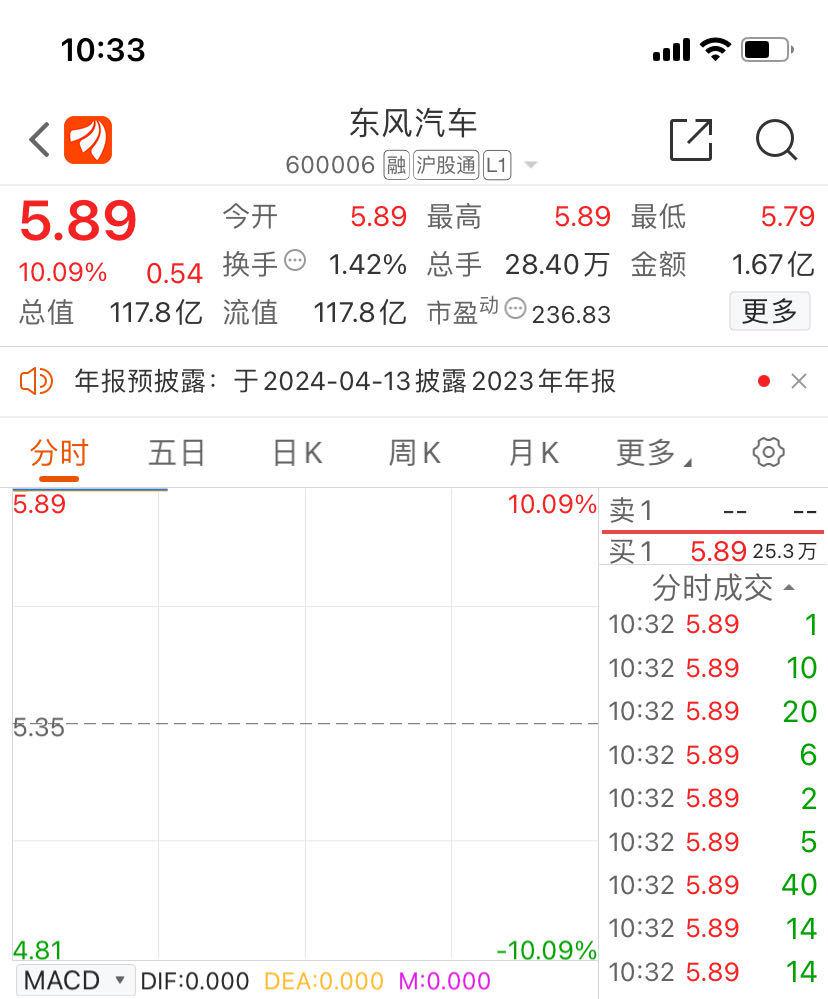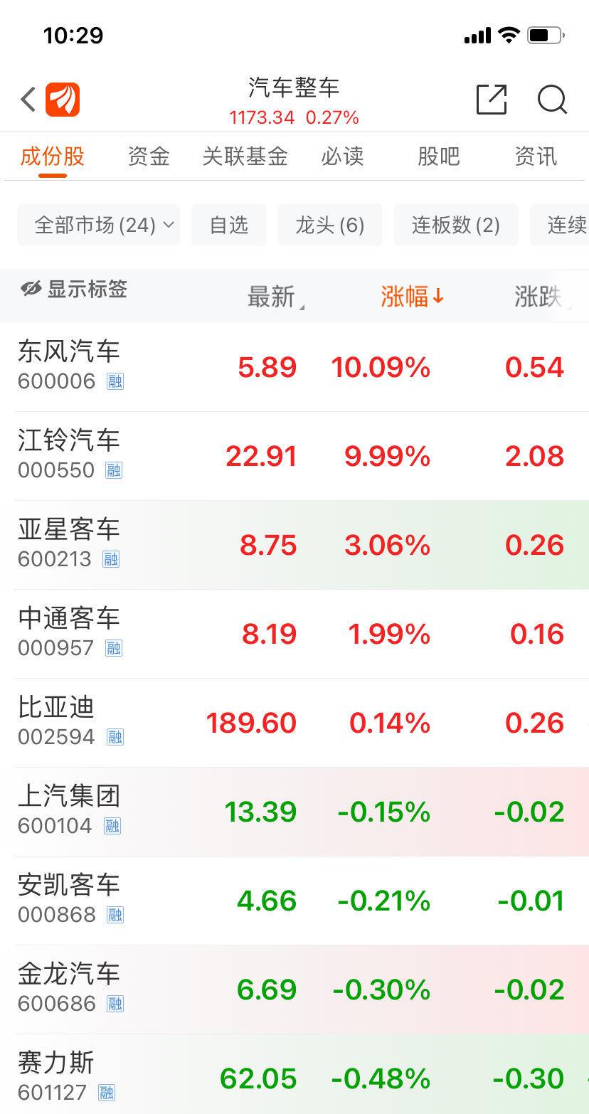二级市场方面,华为汽车概念早盘活跃,东风汽车(600006.SH,股价 5.89 元,市值 117.8 亿元)一字板涨停,江铃汽车涨停,东风科技涨超 5%。