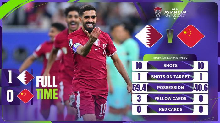 国足 0:1 不敌卡塔尔队比赛数据 图片来源:亚洲杯