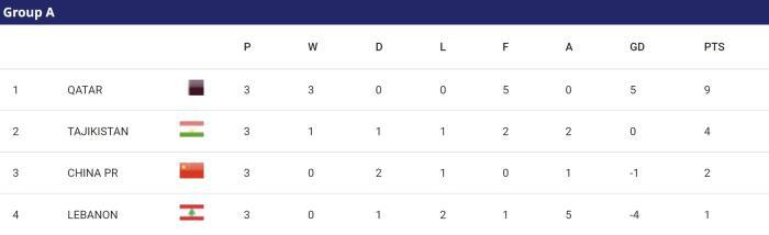 同组另一场比赛中,塔吉克斯坦队与黎巴嫩队曾 1:1 战平。如果以这个比分结束,国足就可以宣告小组垫底出局。