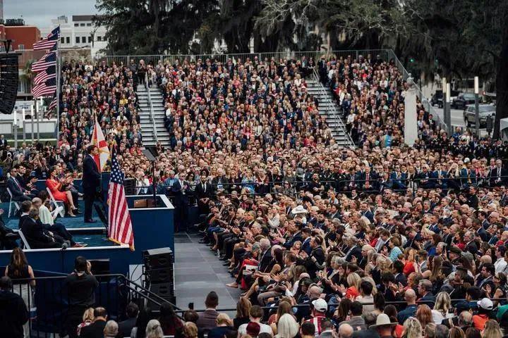 2023 年 1 月 3 日,在美国佛罗里达州塔拉哈西,德桑蒂斯出席州长就职仪式。新华社发(佛罗里达州政府供图)