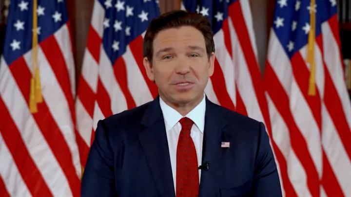 德桑蒂斯 21 日在社交媒体发表讲话的视频截图。